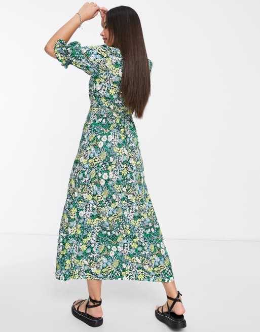 New Look Tall Collared Puff Sleeve Midi Dress In Blue Floral Asos
